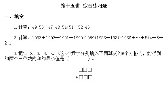 三年級(jí)奧數(shù)上冊(cè):第十五講 綜合練習(xí)題