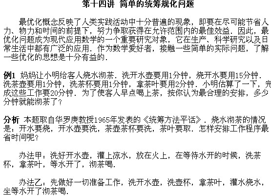 四年級奧數(shù)下冊:第十四講 簡單的統(tǒng)籌規(guī)劃問題